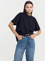 Хлопковая футболка свободного силуэта из трикотажного полотна кулирка. Горловина круглой формы. Свободу движений гарантируют спущенная линия плеча и углубленная пройма. Рукава широкие, чуть выше локтя. Стильная модель!