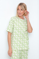 Хлопковая футболка свободного силуэта из трикотажной кулирки. Вырез круглой формы. Свободу движений гарантируют спущенная линия плеча и углубленная пройма. Рукава широкие, чуть выше локтя. Стильная модель!