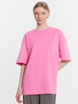 Горловина округлой формы обработана обтачкой из рибаны. Шов втачивания обтачки по спинке закрыт окантован поперечной бейкой из основного полотна. Рукава втачные, короткие. Линия плеча спущена. Нижние срезы футболки и рукавов обработаны швом вподгибку.