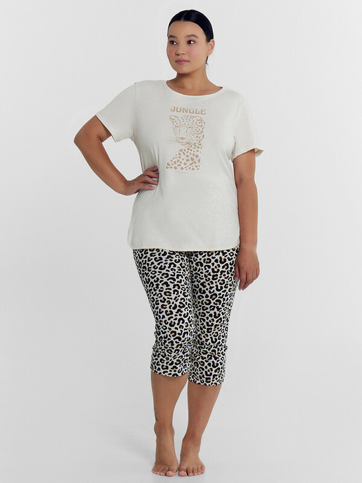 Совместные покупки Нижневартовск Женская одежда Пижамы, халаты — Mark FormelleКОМПЛЕКТ ЖЕНСКИЙ (ДЖЕМПЕР, КАПРИ) 592228 592228 белый песок +леопар