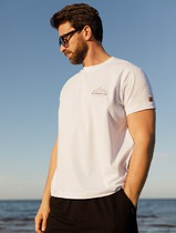 Мужская футболка из кулирки с лайкрой. Рукава отсутствуют, V-образный вырез, отделка горловины другой тканью, принт в виде маленькой надписи. Четыре расцветки — белая, изумрудная, индиго и серый меланж. Размеры от 48 до 54. Есть розница.