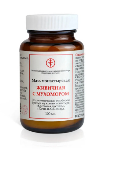 Состав: масляные экстракты мухомора, ромашки, чабреца, шалфея, лепестков сафлора, воск пчелиный, масляная вытяжка подмора пчелиного, живица, масло облепиховое, масло персиковое, мёд.