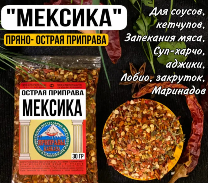 Мы разработали эксклюзивный состав пряностей на основе красного дробленного перца чили. Кулинарные предпочтения у всех разные, одни любят острые блюда, другие не очень. «Мексика» является той золотой серединкой, когда хочется приготовить приятно острых блюд.