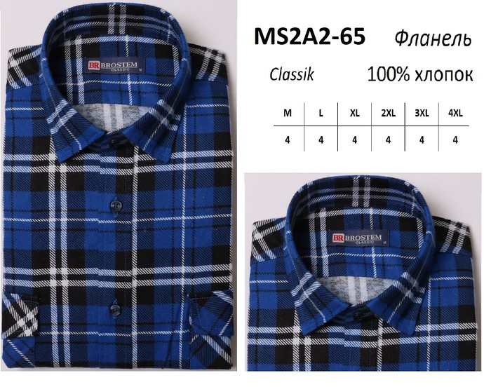 MS2A2-65 M-4XL Сорочка муж.дл.рукав ФЛАНЕЛЬ
