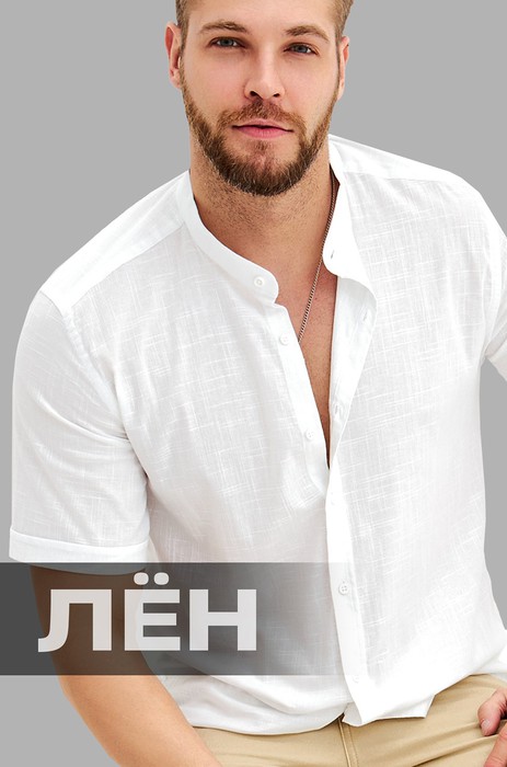 Льняная рубашка для мужчин выполнена из турецкой хлопковой ткани с добавлением льна. Короткий рукав делает рубашку приталенного кроя идеальной для лета. Воротник-стойка добавляет образу харизмы.