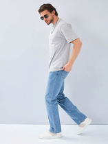 Мужские модные джинсы с пятью карманами. Посадка Slim fit (облегающие по бедру), средняя талия спереди, высокая сзади.. Застежка на молнии. Немного зауженные к низу. Выполнены из слабоэластичной ткани denim comfort stretch. Классическая средняя стирка с потёртостями и "усами" спереди и потёртостями сзади.