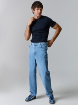 Цвет: стирка средняя Состав: 100%Хлопок Материал: Blue denim 009 Вес материала: 11 Фит: Regular fit Талия спереди: высокая Талия сзади: высокая Ширина колена: 22см Ширина низа: 21см ID: 253032