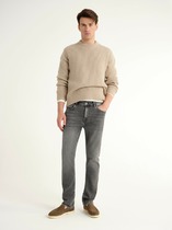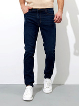 Мужские классические джинсы с пятью карманами. Посадка Comfort fit (свободные по бедру), высокая талия, широкие в колене и по низу. Застежка на молнии. Выполнены из традиционной хлопковой ткани denim. Темная стирка с камнями (stone wash).