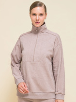 Женский свитшот свободного силуэта с вышивкой на рукаве, выполнен из премиального футера без начёса. Объемный крой, удлиненный рукав, спущенное плечо и приятный материал идеальны для повседневного уютного и комфортного образа. Манжеты, округлая горловина и пояс изделия скроены из плотного трикотажа в рубчик. Свитшот прекрасно сочетается с бесшовными легинсами и велосипедками MY.