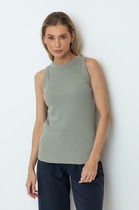 Базовый топ на широких бретелях. Модель выполнена по бесшовной технологии из мягкой эластичной микрофибры, без чашки и уплотнения. Широкая резинка по нижнему краю обеспечивает мягкую комфортную поддержку груди.