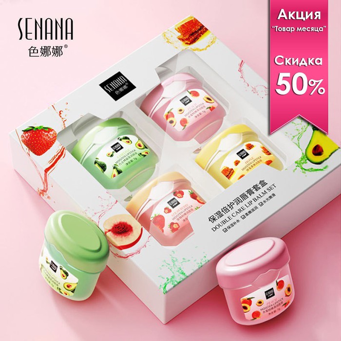 Набор состоит из 4-х бальзамов для губ в ванночках: "Авокадо", "Персик", "Клубника", "Мед".Набор бальзамов для губ Senana питает и увлажняет кожу губ, предотвращает потерю влаги, помогает справляться с шелушениями и мелкими трещинками. Губы становятся гладкими, упругими и подтянутыми. Бальзам для губ можно использовать ежедневно.