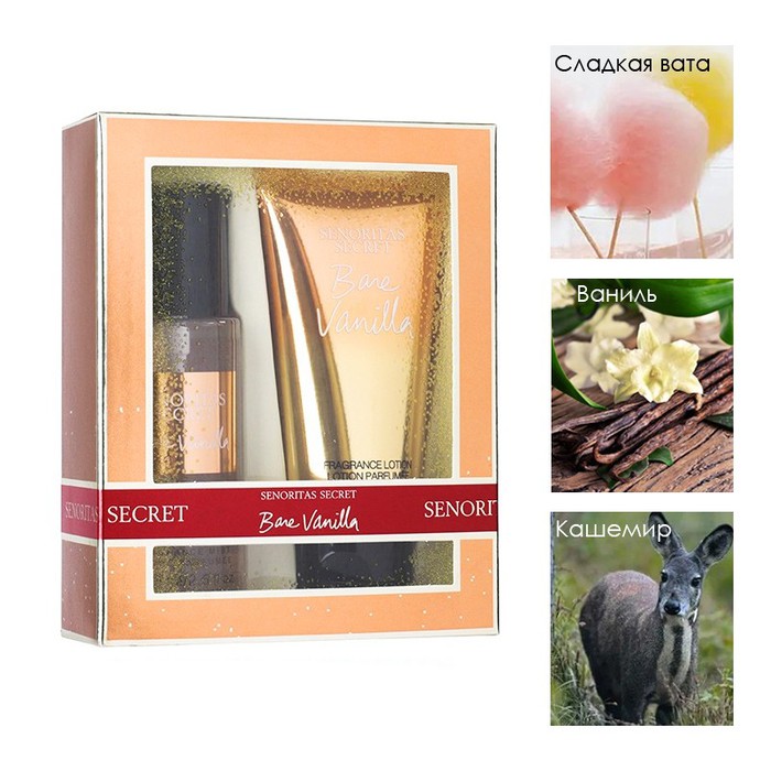 Совместные покупки Нижневартовск Косметика и парфюмерия Прочий макияж — Набор парфюмированный спрей + лосьон для тела BARE VANILLA Senoritas Secret, 2 ш