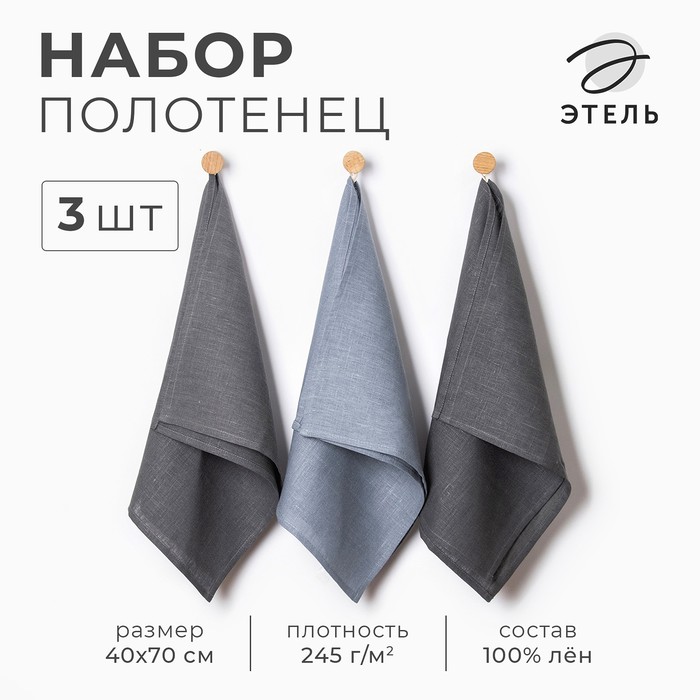 Совместные покупки Нижневартовск Товары для дома и дачи Прочий домашний текстиль — Набор полотенец д/кухни из 100% льна 245г/м2 40х70(3шт) - Графит/Серо-голубой