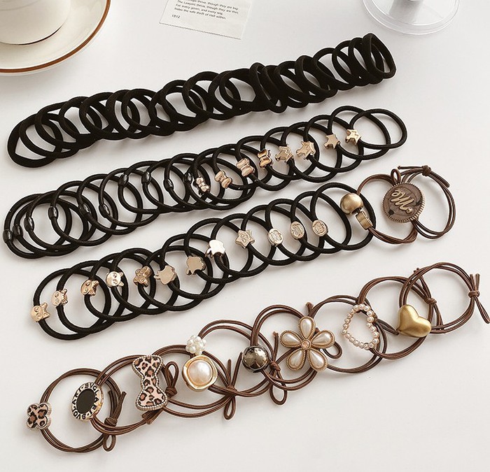 Набор включает в себя разноцветные резинки, которые могут использоваться для создания пучков, хвостов, косичек и других причесок. Они идеально подходят как для повседневного использования, так и для особых случаев. Благодаря разнообразию цветов и стилей, вы сможете подобрать аксессуар, который подчеркнет вашу индивидуальность и стиль.В набор входит: 20 черных классических резинок, 20 черных резинок с золотистой бижутерией, 10 черных резинок с черной бусиной, 10 резинок коричневых с регулировкой диаметра и разной по размеру бижутерией.