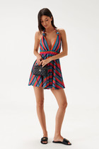 Платье свободной формы- многослойное, с воланами по косой. Горловина круглой формы, лиф переда с нагрудной вытачкой, рукав втачной одношовный.Длина рукава: 30 см.Длина изделия: 115 см.