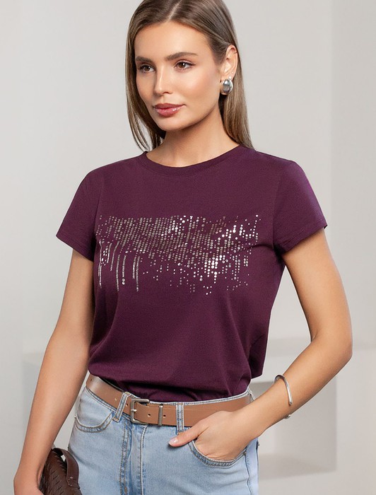 Эта нарядная футболка подходит для создания образа на каждый день и идеально подойдет на выход. Модель не мнется, что делает ее практичным вариантом для активных женщин, которые ценят стиль и удобство.