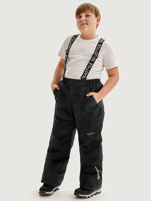 - брюки с регулируемыми бретелями, удобными карманами, флисовой подкладкой до середины бедра,