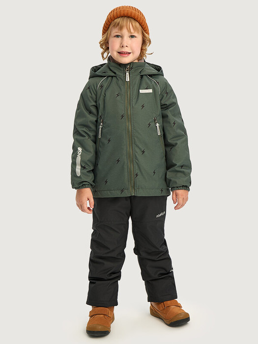 Костюм МОЛНИЯ с системой роста на один размер (длина рукавов и брючин увеличивается на 4-5см).Костюм из мембранной ткани 5000/5000 с водо- грязеотталкивающей технологией TEFLON.Мембранная ткань - это непродуваемый и водонепроницаемый материал, который надежно защищает от ветра и влаги. Благодаря дышащим свойствам мембраны ребенку будет комфортно в любую погоду и он не вспотеет. Ткань обработана снаружи экологически чистым протектором TEFLON для защиты от воды и грязи .Мембрана в сочетании с утеплителем нового поколения FIBERlite сохраняет тепло во время прогулок, позволяя телу дышать. Флисовая подкладка отводит влагу и имеет хорошие теплоизоляционные свойства.  Функционал: - центральная застежка и карманы на молнии, - ветрозащитная планка, - капюшон с кулисой для регулировки объема, - манжеты на резинке, - внутренняя сторона манжета из флиса, - внутренние бретели для возможности снять куртку в помещении. Мы все продумали до мелочей, поэтому полукомбинезон дополнительно оснащен:- регулируемыми бретелями, - удобными карманами, - снегозащитными муфтами, - силиконовыми штрипками, - светоотражающими элементами для безопасности ребенка в темное время суток.Область колен и шов сидения проклеены.В костюме предусмотрена СИСТЕМА РОСТА. Удлинить рукава и штанины можно, удалив строчку на подкладке и костюм подрастет вместе с ребенком.Комфортная температура эксплуатации от -5°С до +10°С. Рекомендуем приобрести комплектом аксессуары, обувь и другие вещи из капсулы в карточке товара, которые отлично сочетаются с изделиями коллекции.