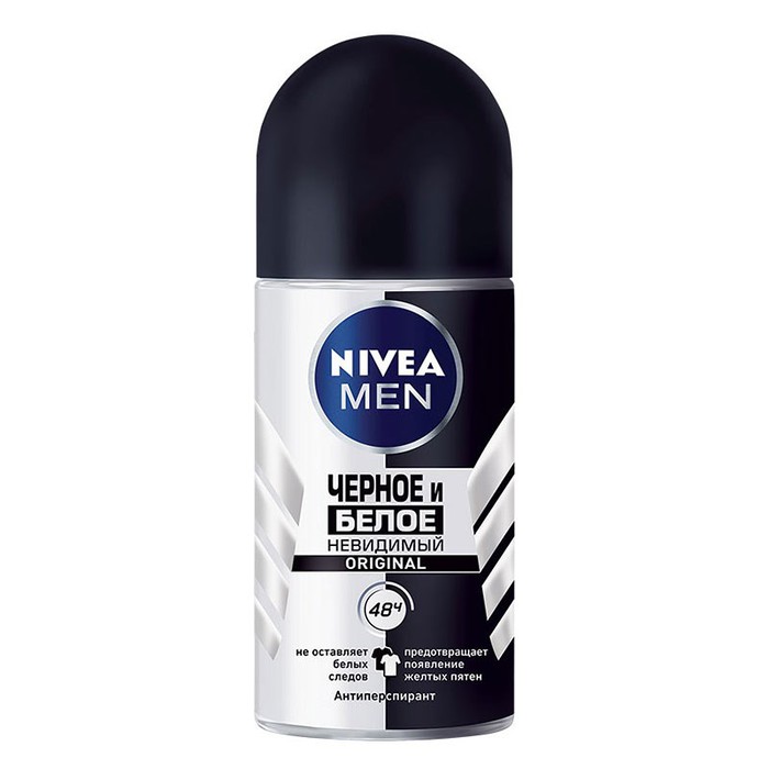 Роликовый дезодорант-антиперспирант NIVEA MEN Черное и Белое Невидимый Fresh предотвращает появление белых пятен на темной одежде и желтых пятен на светлой.