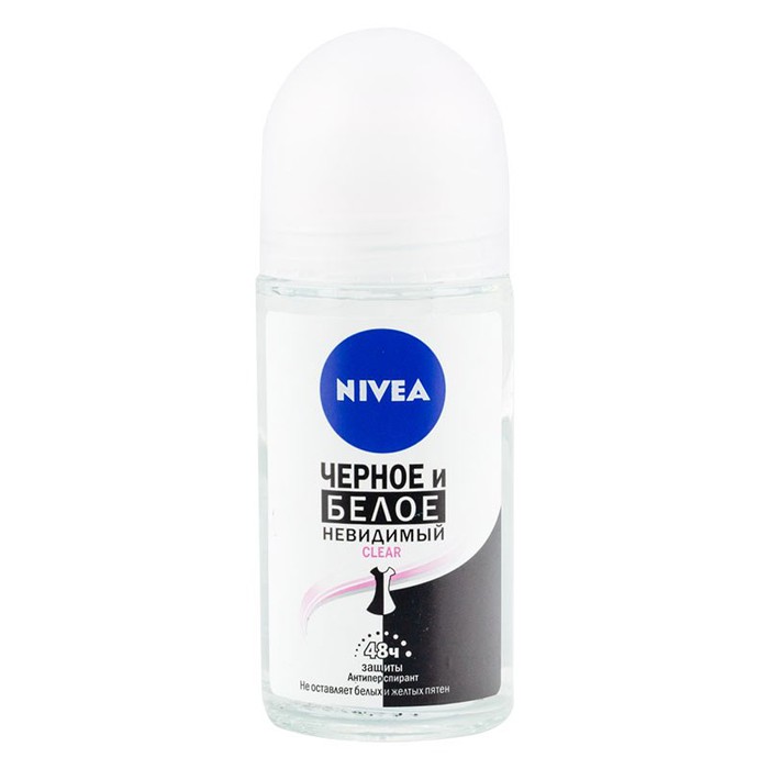 Дезодорант-антиперспирант шариковый Невидимая защита для черного и белого Nivea не оставляет белых следов на черной одежде, предотвращает появление желтых пятен на белой. Надежно защищает Вас и Вашу одежду 48 часов.