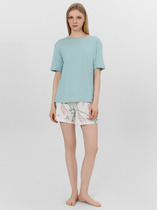 Сорочка женская из трикотажного полотна «кашкорсе» с набивным рисунком, слегка расширенная книзу, с короткими втачными рукавами, углубленной формой горловины. Низ изделия и нижние срезы рукавов обработаны эластичной тесьмой с фасонным краем.