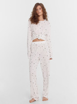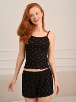 Сорочка женская из трикотажного полотна «кулирка» с набивным рисунком, расширенная книзу, без рукавов, с расширенной, углубленной горловиной овальной формы и притачной кокеткой по переду. Срезы пройм и горловины, а также шов притачивания кокетки, обработаны фасонной эластичной тесьмой с кружевным краем. Низ изделия обработан узкой обметочной строчкой.