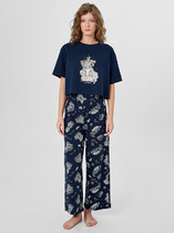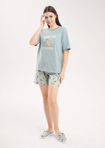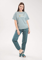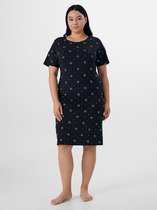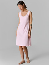 Сорочка женская из трикотажного полотна «кулирка» с набивным рисунком, расширенная книзу, без рукавов, с расширенной, углубленной горловиной овальной формы и притачной кокеткой по переду. Срезы пройм и горловины, а также шов притачивания кокетки, обработаны фасонной эластичной тесьмой с кружевным краем. Низ изделия обработан узкой обметочной строчкой.