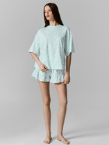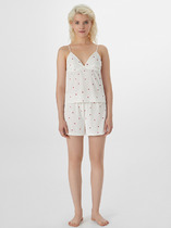 Сорочка женская из трикотажного полотна «кулирка» с набивным рисунком, расширенная книзу, без рукавов, с расширенной, углубленной горловиной овальной формы и притачной кокеткой по переду. Срезы пройм и горловины, а также шов притачивания кокетки, обработаны фасонной эластичной тесьмой с кружевным краем. Низ изделия обработан узкой обметочной строчкой.