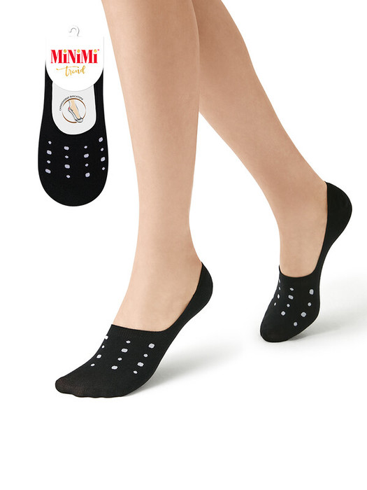 Женские подследники MiNiMi в горошек, укрепленные силиконом. Мягкий и дышащий хлопок в составе обладает высокой воздухопроницаемостью и отлично впитывает влагу, а эластан обеспечивает превосходное облегание. Благодаря специальным силиконовым фиксаторам, подследники плотно прилегают к пятке и не скатываются при ходьбе.