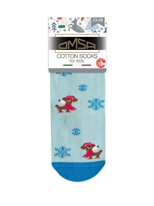 Носки детские CALZINO 21P63 тм OMSA KIDS с рисунком «Собачки». Мягкие и приятные на ощупь, благодаря натуральному хлопку в составе. Экологичный материал обладает высокой воздухопроницаемостью, хорошо впитывает влагу и снижает потоотделение. Подходит даже для самой чувствительной кожи.