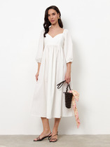 Платье с «качелями» в зоне декольте смотрится очень женственно. Изделие на бретелях полуприлегающего силуэта, расширенное книзу из атласной плательной ткани.