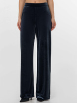 Брюки прямого силуэта, зауженные книзу из костюмной ткани. На передней части брюк застрочены стрелки. Пояс притачной с эластичной резиной.