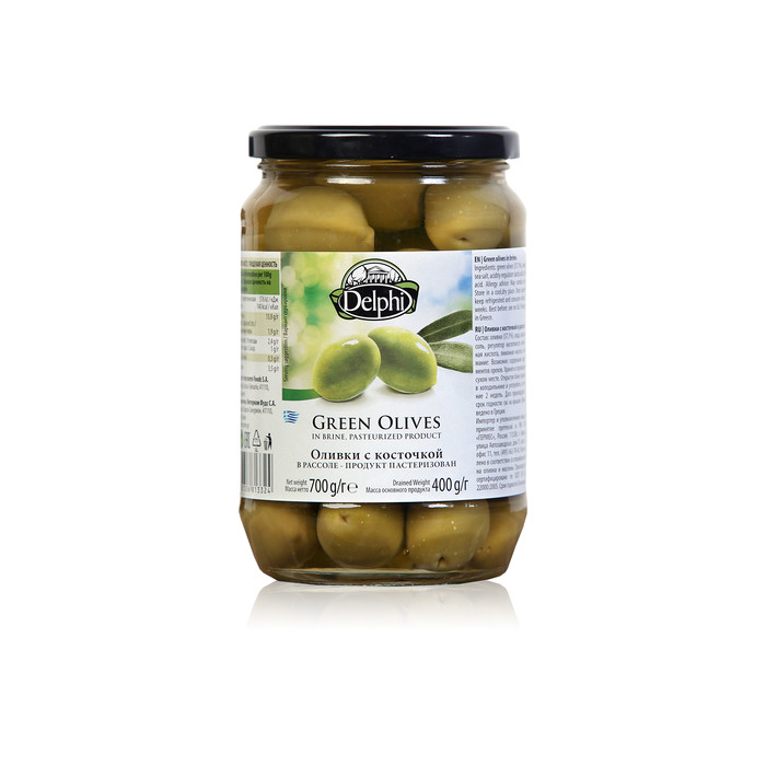 Описание Консервы овощные: Оливки c косточкой в рассоле Delphi Масса нетто 700г, масса основного продукта 400г Состав: оливки без косточки (57,1%), вода, морская соль, регулятор кислотности: молочная кислота, лимонная кислота. Продукт пастеризован, не содержит ГМО, готов к употреблению. Пищевая/энергетическая ценность на 100г: 140кКал/576кДж жиры 13,8г из них: насыщенные 1,9г, углеводы 2,4г из них: сахар 1,0г, белки 0,3г, соль 3,5г. Хранить при температуре от 0 °С до +25 °С и относительной влажности воздуха не более 75%. Открытую упаковку хранить в холодильнике при температуре от +2°С до +6°С и употребить в течение 14 дней. Срок годности 36 месяцев. Изготовитель: «Intercomm Foods S.A.» 8th klm Larissa Sykourion, 41500 Larissa, Greece. Страна происхождения Греция. Изготовлено в соответствии со спецификацией на оливки и маслины. Дата производства/ Годен до: смотри на крышке.
