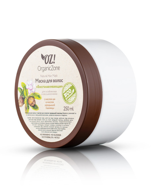 Натуральная маска с маслом ши и маслом зародышей пшеницы бережно ухаживает за ослабленными и секущимися волосами, делая их сильными и гладкими.