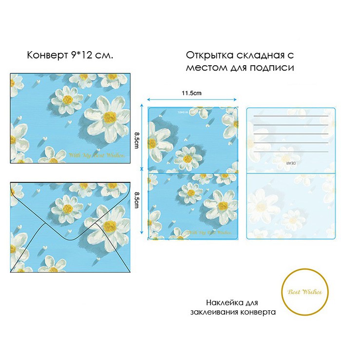 — Открытка + конверт с 3D-рисунком РОМАШКИ НА ГОЛУБОМ ФОНЕ