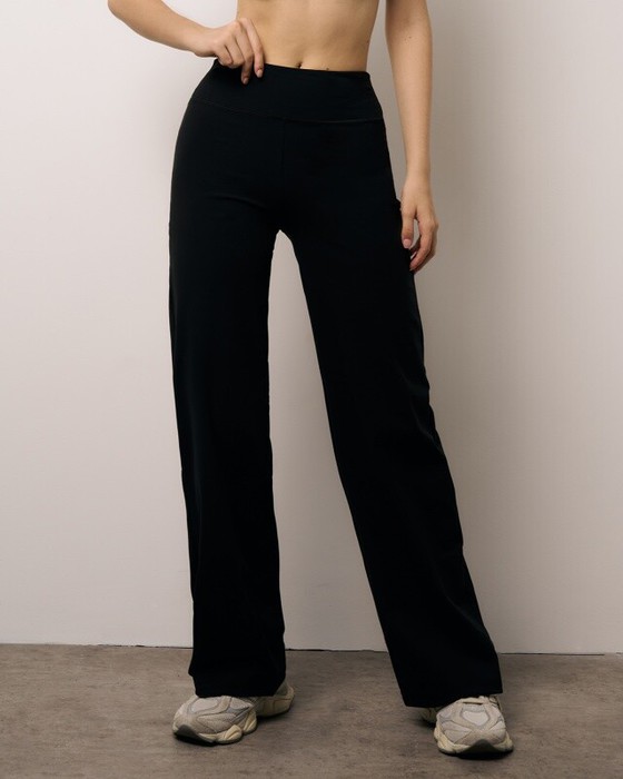 Спортивные брюки палаццо с широким завышенным поясом.