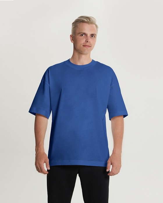 Футболка свободного силуэта. Спущенное плечо. Горловина из двух деталей, из рибаны.