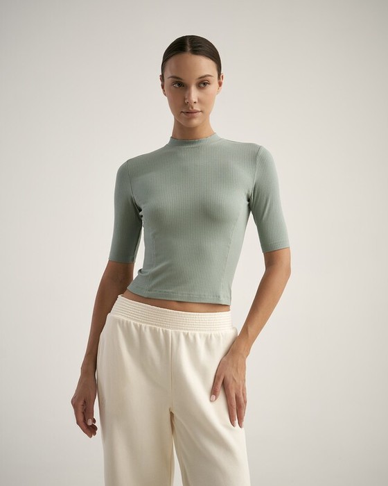 Укороченная футболка, облегающего силуэта. Притачная стойка.
