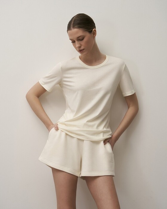 Женская футболка полуприлегающего силуэта. Горловина окантована.
