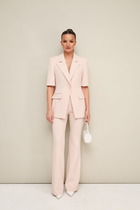 Футболка с цельнокроеным рукавом и отрезными манжетами из однотонной ткани, с горловиной V вырезом. Спинка разрезная,  декор отстрочка. Удлиненные шорты свободного кроя, отстроченный пояс.