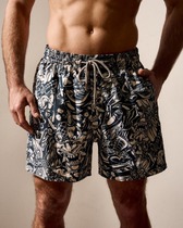 Плавательные шорты. Карманы в боковых швах. Задний карман с клапаном на правой задней половинке шорт. Пояс цельнокроенный, отстроченный, внутри с резинкой и шнурком.