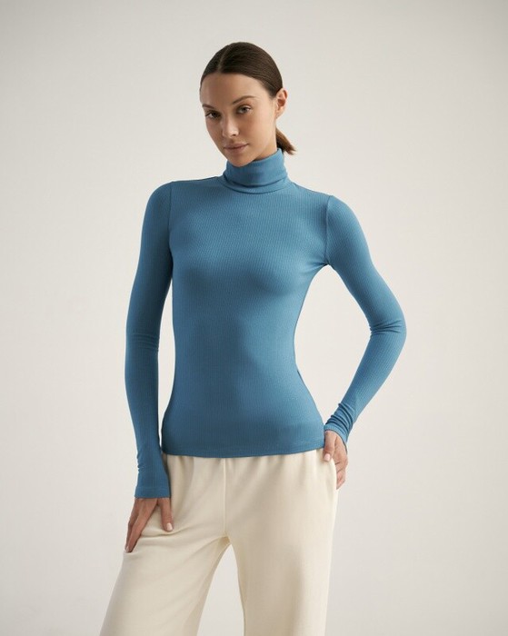 Водолазка облегающего силуэта. Притачная стойка с отворотом.Втачной рукав.