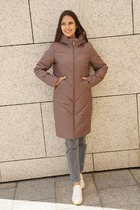 Пальто на синтепухе – новый модный фаворит современных женщин. И, что важно, на всех возрастных категориях пальто на синтепухе смотрится достойно. Синтепух (синтетический пух) – это самый лучший заменитель натурального пуха. Синтепух является современным, легким, упругим, мягким и объемным материалом. Благодаря эластичности синтепуховая одежда способна быстро восстановить свою первичную форму после стирки. Синтепуховые пальто сохраняют первозданный вид в течение длительного времени. Оригинальная стежка пальто-растянутый ромб подчеркивает фигуру наилучшим образом. Застежка смещенная на скрытую молнию, воротник-стойка со съемным капюшоном. Линия низа-фигурная. Длина изделия 91 см, длина рукава 65 см. Температурный режим до -10-15.