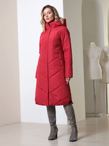 пальто женское с центральной застёжкой на кнопки. Линия плеча спущенная, рукав втачной одношовный с кулисой по низу. По переду прорезные карманы с листочкой с втачными краями. Капюшон цельнокроенный с центральной частью. В качестве отделки испоьзуются детали. Варежки съёмные манишка с центральной с центральной застёжкой на тесьму-молнию(втачная деталь).