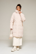 Пальто женское, свободного кроя с двухбортной застежкой на петли ипуговицы, с открытыми бортами,линия плеча спущена. По спинке средний шов, по переду накладные карманы. Рукав втачной 2-шовный. Воротник стояче-отложной.