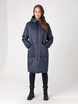 Зимнее пальто прямого силуэта с втачными рукавами и застежкой на двухзамковую молнию, которая расстегиванием снизу, позволяет регулировать ширину шага при подъеме и ходьбе.  Воротник - стойка, переходящая в капюшон. Комфортности добавляют две пары удобно расположенных карманов, верхние из которых, фиксируются кнопкой. Есть внутренний кармашек на молнии. Прямой силуэт пальто можно скорректировать затяжкой, акцентируя линию талии и создавая тем самым большее прилегание. Модель этого пальто средней длины рекомендована женщинам и девушкам любой возрастной категории. Оно универсально  - его можно сочетать как с платьями и юбками, так и с джинсами и брюками.  Плащевая ткань имеет водоотталкивающую пропитку,  которая выдержит небольшой  дождь или снег. Хорошо зарекомендовавший себя современный утеплитель с содержанием овечьей шерсти Альполюкс, плотностью 300 г/м, защитит от холода и  ветра. Подкладка в изделии - в мелкую полоску.