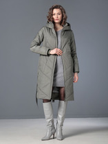 Зимнее пальто прямого силуэта с застежкой на двухзамковую молнию, которая  позволяет регулировать ширину шага при необходимости. Ветрозащитная планка фиксируется кнопками. Длину втачного рукава можно корректировать отворотом. Воротник - уютная стойка с внутренней отделкой из трикотажного меха. Опушка не отстегивается, но очень хорошо стирается и после высыхания сохраняет свой внешний вид. Регулируемый капюшон не отстегивается. Карманы удобно расположены в подрезах. Есть внутренний кармашек на молнии. Модель такого пальто средней длины подходит для девушек и женщин разных возрастных категорий. Плащевая ткань, из которой выполнено изделие, имеет водоотталкивающую пропитку, выдерживающую небольшой  дождь, снег и ветер. Хорошо зарекомендовавший себя утеплитель "Холлофайбер", плотностью 300гр/м, защитит от холода.  Подкладка в изделии выполнена из ткани в мелкую полоску.
