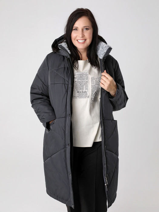 Зимнее пальто прямого силуэта с застежкой на двухзамковую молнию, которая позволяет регулировать ширину шага при необходимости. Ветрозащитная планка фиксируется кнопками. Длину втачного рукава можно корректировать отворотом. Воротник - уютная стойка с внутренней отделкой из трикотажного меха. Опушка не отстегивается, но очень хорошо стирается и после высыхания сохраняет свой внешний вид. Регулируемый капюшон не отстегивается. Карманы удобно расположены в подрезах. Есть внутренний кармашек на молнии. Модель такого пальто средней длины подходит для девушек и женщин разных возрастных категорий. Плащевая ткань, из которой выполнено изделие, имеет водоотталкивающую пропитку, выдерживающую небольшой дождь, снег и ветер. Хорошо зарекомендовавший себя утеплитель "Холлофайбер", плотностью 300гр/м, защитит от холода. Подкладка в изделии выполнена из ткани в мелкую полоску.