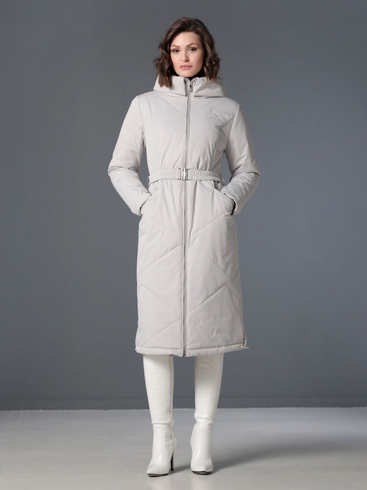 Длинное демисезонное пальто полуприлегающего силуэта с втачными рукавами и разрезами по бокам. Застежка на двухзамковую молнию позволяет расстегнуть пальто как сверху, так и снизу, что актуально при такой длине изделия для корректировки ширины шага и при подъеме по лестнице. Воротник - стойка, переходящая в капюшон. Прорезные карманы с декоративными лИсточками удобно расположены в рельефных швах. При желании линию талии можно акцентировать съемным эластичным поясом на защелке. Плащевая ткань имеет водоотталкивающую пропитку, которая выдержит небольшой осенний дождь или снег. Хорошо зарекомендовавший себя утеплитель Холлофайбер, плотностью 150 гр/м, защитит от холода и ветра. Подкладка в изделии выполнена из качественной ткани точно в цвет верха. Фантазируйте с аксессуарами, и Ваша осень будет стильной и комфортной!