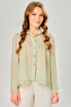 Пальто женское демисезонное, двубортное, прямого силуэта длиной ниже колена, на подкладке. Застежка двубортная на 2 пары рабочих пуговицы и петли. По переду карман с листочкой. По спинке в нижней части среднего шва отлетная шлица. Рукав длинный, комбинированный, с ластовицей. Воротник и лацкана отложные. По воротнику, лацканам, бортам, листочкам отделочная строчка - имитация ручного стежка.